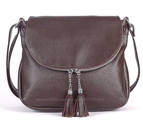 Шкіряна крос-боді з китицями, кольори в асортименті.Розмір (ДхШхВ): 24 x 8 x 21