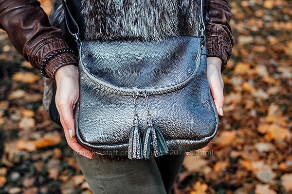 Подробное описание: Шкіряна жіноча крос-боді з китицями, кольори в асортименті