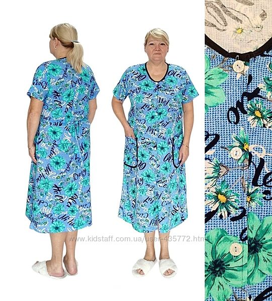 фото 1 халат женский с кокеткой на груди на пуговках"Катя". С двумя карманами, материал кулир-реактив 100% хлопок, в наличии в размерах 46,48,50,52,54, цена всех размеров 155грн, опт 140грнфото 3,4,5,6,7Жіночий батальний халат на гудзиках. Добре повномірний. З двома накладеними кишенями. На спині пояс, короткий рукав ( край рукава розпошив). Матеріал виробу кулір - реактив, вартість 2021 року, не дешеві тому що досить довгі та повномірні. Гудзики зручні , досить крупні. Розміри в наявності: 48,50,52,54 - 385 грн ,