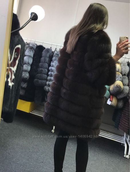 Супер акция Шуба из меха песца 90см шоколад