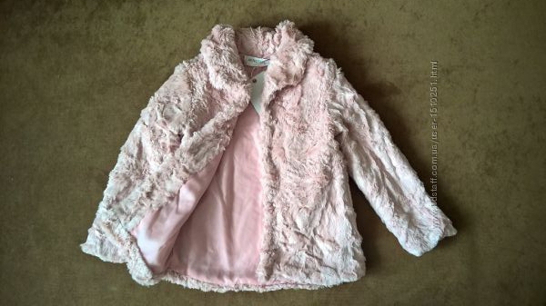 Шуба из искусственного меха Minoti. Цвет пудрово-розовый. Размер 92. Состав: верх искусственный мех (100% ПЭ), подкладка 100% ПЭ. Длина по спинке 40см. Ширина между проймами 29см. Длина рукава 34см. Ширина плеч 25см.