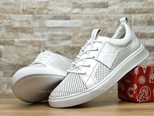 Подробное описание: Кожаные белые кеды с перфорацией Calvin Klein