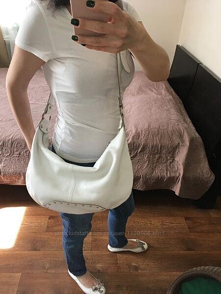 Кожаная белая сумка cristina на длином ремешке