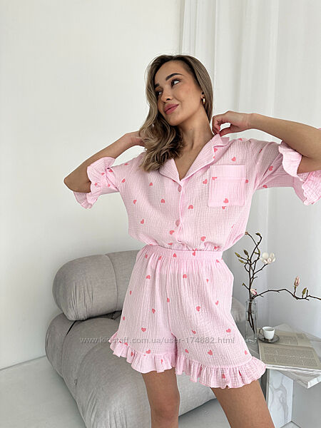 Комплект 167 christel жіноча муслінова піжама сорочка і шортики з воланом