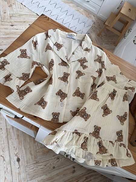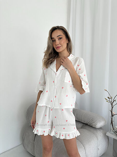 Подробное описание: Комплект 167 christel жіноча муслінова піжама сорочка і шортики з воланом