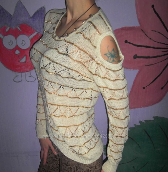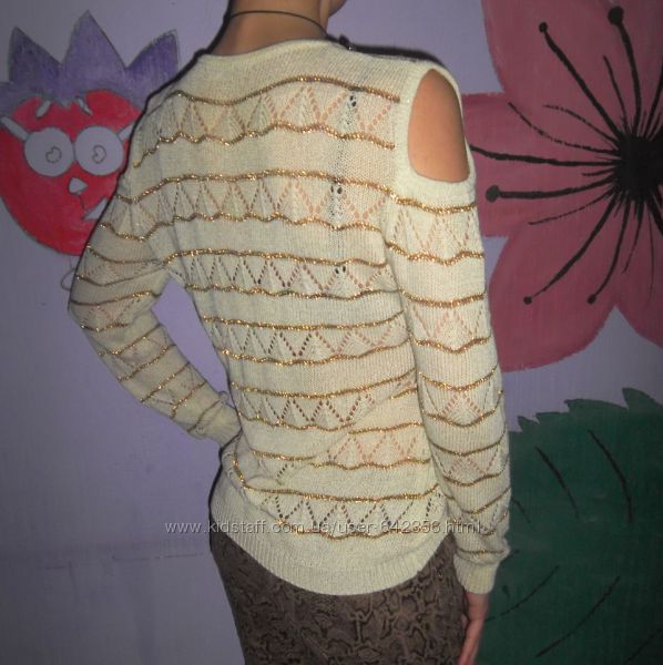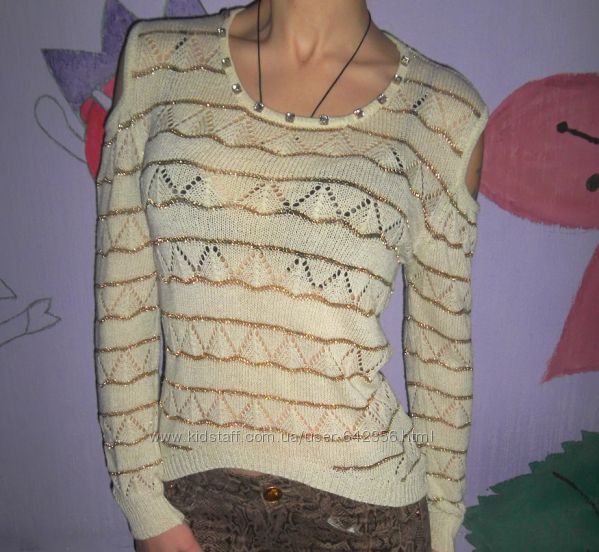 Шикарная кофта с камнями с вырезами на плечахСпереди короче