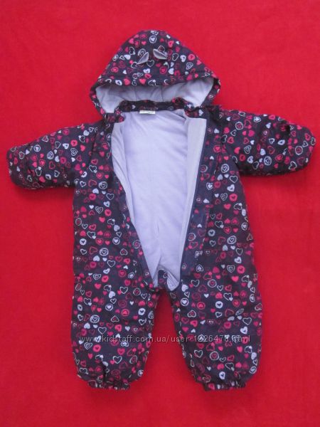 Комбинезон демисезонный Beby. Бангладеш. На рост 74 см., можно носить и дольше.Девочке. Имеется ветрозащитная планка. Есть рукавички, если их вывернуть, ручки открываются.Замеры: Плечи -27,5 см.; Длина рукава - 25 см.;Ширина под мышками - 39 см.;Длина до памперса - 44 см.; Длина изделия - 66 см.