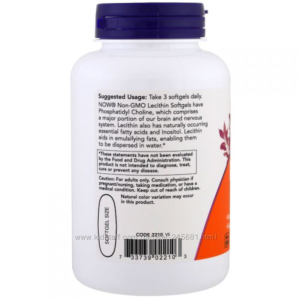 Мягкие таблетки с лецитином от NOW® без ГМО содержат фосфатидилхолин, который входит в состав значительной части клеток мозга и нервной системы. Лецитин также содержит незаменимые жирные кислоты природного происхождения и инозитол. Лецитин способствует эмульгированию жиров, позволяя им смешиваться с водой.
