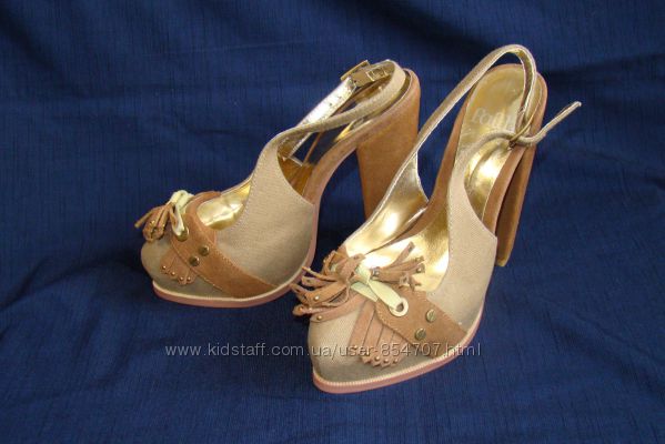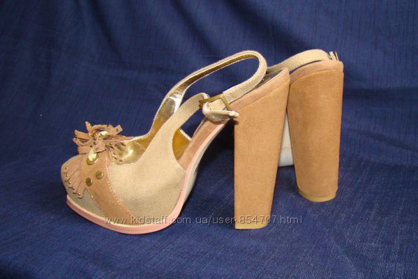 Босоножки Faith (Размер 36 (UK4))Цвет светло-коричневый. На скрытой платформе. Устойчивый каблук. Верх выполнен из натуральной замши и текстиля, внутри эко-кожа. Есть небольшой нюанс – маленькая царапина на набойке (на последнем фото).