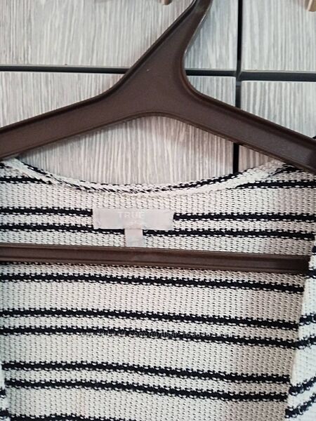 Кофта без пуговиц бело-черная полосатая True style ,размер ХЛ (48-50) .в хорошем состоянии.Ширина по груди 52 см,плечи 50 см,длина 73 см,рукав56 см.Состав 57% полиэстер,29% шерсть,6%полиакрил,8% вискоза. Цена 110