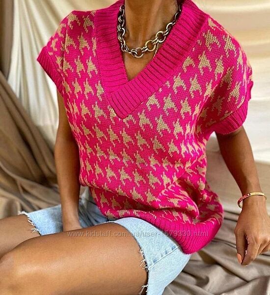 Жилетка в´язання італія гусяча лапка бежева коричнева моко рожева малина