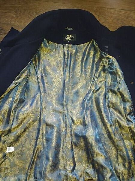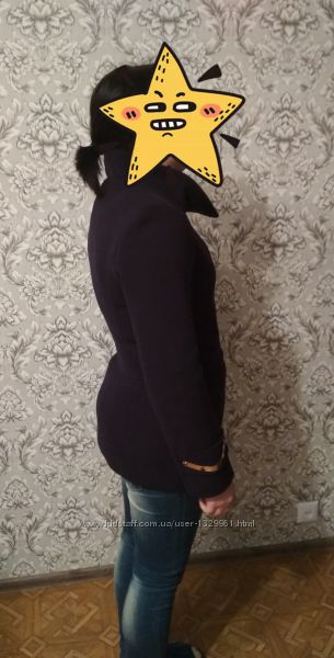 Темносинє пальто з поясом, 46 розмір. Матеріал не вказаний. На рукавах металеві вставки, застібається на блискавку і кнопки. Довжина по спині 66 см, плечі 39 см, довжина рукава 62 см. Параметри моделі на фото: ОГ 90 см, ОБ 100 см, зріст 167 см.Без повернення.