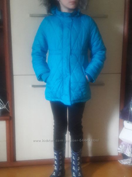 Куртка с сайта Аэропостал , на бирке размер 8, маломерит немного, можно носить со 128 см роста , тогда выглядит как пальтишко. На фото рост девочки 140 см. Состояние хорошее , на 4+, рукав с запасом , есть резинка.В серединке по спинке флис , утеплена синтапоном , подойдет на холодную весну-осень.