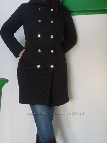 Черного цвета очень симпатичное стеганое пальто с капюшоном насыщенного черного цвета. На тепленьком синтепоне. Легкое, практичное, надежное в непогоду и удобное. Застежка на молнии и кнопки. Размер евро 42 на наш 48. Обхват груди 96-100 см, по талии 78-83 см, по бедрам до 106-108 см (так указывает производитель в размерной сетке). В прекрасном состоянии, без дефектов. Просто мне стало мало. Мой рост 170 см. Покупала год назад в Турции за 75 долларов. Цену у нас на подобное изделие можно увидеть хотя бы в магазине Розетка