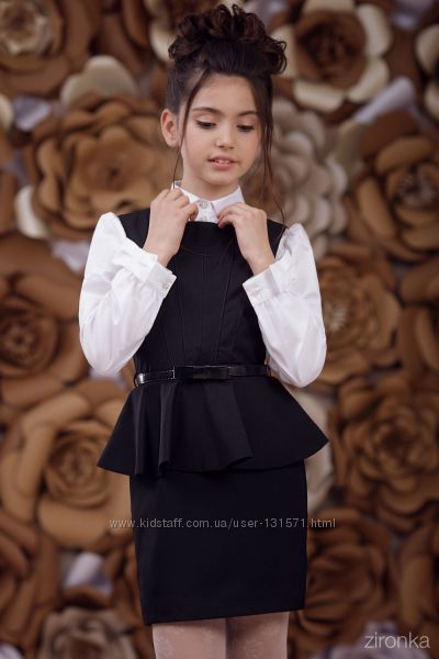 Талию красиво подчеркивает поясок. Такой сарафан - отличный выбор для школы, стильный и деловой обязательно настроит Вашего ребенка на учебный лад.