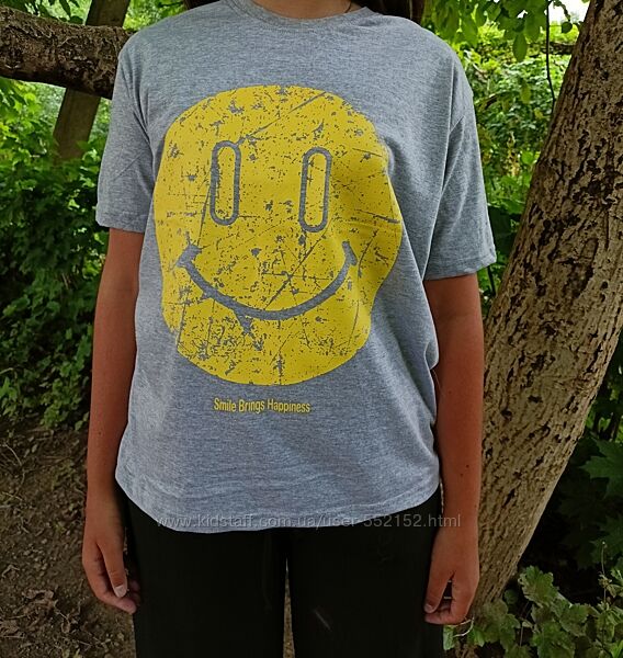Футболки для хлопчиків оверсайз унисекс 10-16 років.Якісні футболки з яскравим принтом "Смайл".