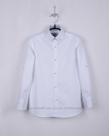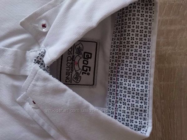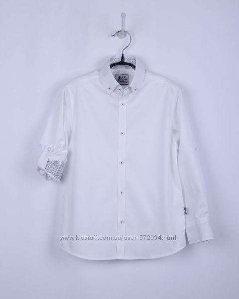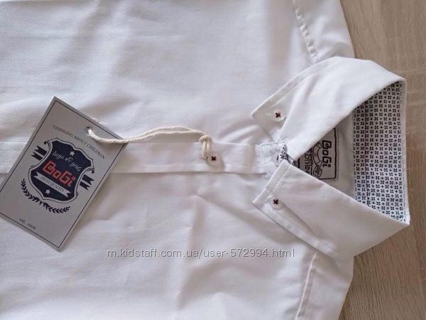 нарядные рубашки тм bogi. качество пошив отличное!!! Рубашка casual из высококачественной фактурной ткани для школы и повседневная, приталенная за счет выточек по спинке. Контрастная отделка на внутренней стойке и манжете. Воротник "button down". Кокетка спинки V-образной формы. Длинный рукав подбирается рукавным хлястиком. Застежка планка на пуговицы и петли. Пуговички пришиты контрастной ниткой. Вдоль внутренней планки проложена контрастная отделочная строчка. В низу левого бокового шва расположен брендовый флажок BoGi. Ткань 97% хлопок/ 3%эластан. Фактурная ткань. полномерные. наличие размеров уточняйте! размеры 122-128 .цена 425 грв вопросы в личное сообщение или на вайбер 0506482600красивого белого цвета без никаких оттенков !