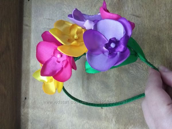 Подробное описание: Обруч Орхидея ручная работа, веночек, цветы из ленты