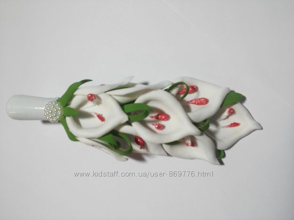 Красивая и в тоже время нежная заколка-стрела на голову))) Все цветочки выполнены из фоамирана, очень легкие, приятные и бархатистые на ощупь))Возможно выполнение под заказ на любом креплении!)