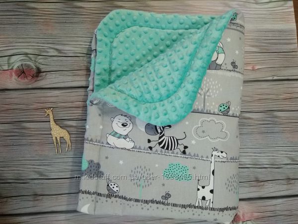 Тёплый плед для вашего малыша на холодную осень и зиму.Размер 77*95. Изготовлен из 100% хлопка и нежного плюша Minky, утеплён синтепоном.