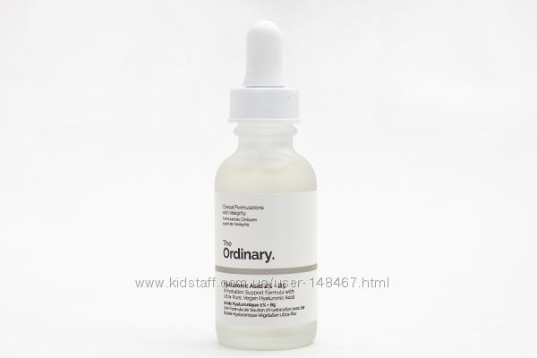 The Ordinary Hyaluronic Acid 2% + B5 . Сыворотка с гиалуроновой кислотой (2%) и витамином B5 интенсивно увлажняет кожу благодаря веганской гиалуроновой кислоте. В составе этой сыворотки имеется низко-, средне- и высокомолекулярная гиалуроновая кислота, а также кроссполимер гиалуроновой кислоты следующего поколения, благодаря чему молекулы проникают и в более глубокие слои кожи.