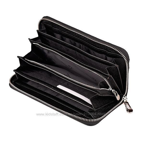 Женский кожаный кошелек клатч на молнии ST. Женский кошелек-сумочка ST. Закрывается на молнию. Внутри 4 открытых отделения для банкнот, большое отделение на молнии, два больших кармана и 36 карманов для карточек, на обратной стороне дополнительный карман на молнии. Размер (см.) 20*10. Поставляется в фирменной коробке.