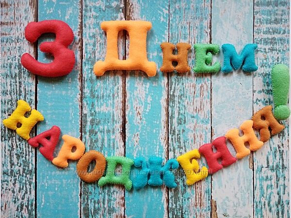 Цифри. літери, іменні гирлянди, іграшки та святкові аксессуари з фетру