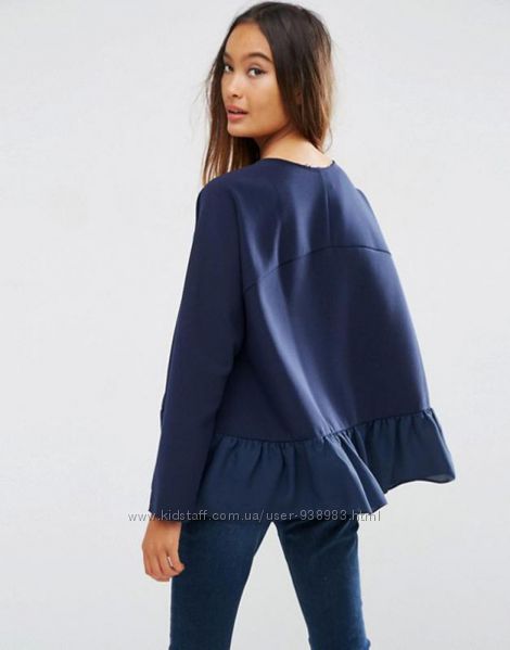 В наличии новая синяя блузка-оверсайз (плотная ткань), будет на маленький рост (160- 162 см), с рукавом и полупрозрачной оборкой (баской) по низу, марки Asos, раземр Uk8 (Xs-S).Фото на себе - скину в сообщения.Очень приятная и плотная ткань, оборка с плотного и приятного шифона.77% полиэстер, 17% вискоза, 6% эластан.Другие объявления продавца