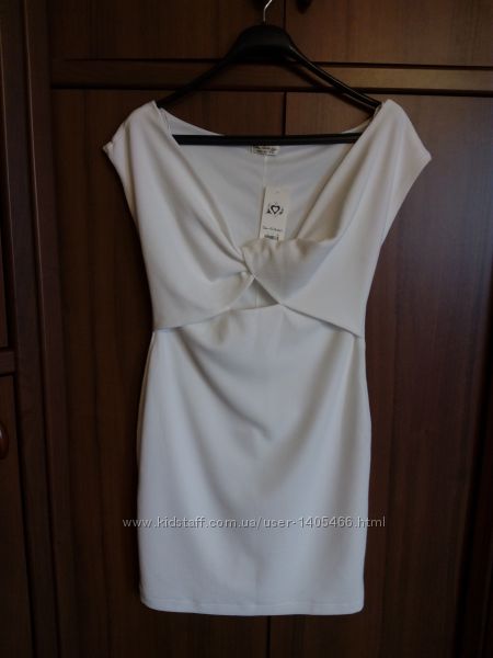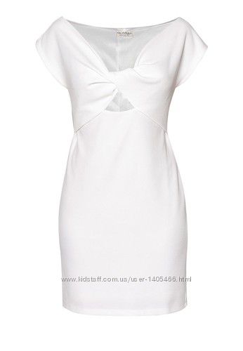 Оригинальное фирменное платье английского бренда Miss Selfridge, размер: 12/40 евро, наш 46 р., см. замеры, цвет: белый. Облегающий силуэт, на груди декоративный узел, приоткрытый живот, на подкладке. Смотрится необычно, ярко и стильно. Состав: 96% полиэстер, 4% эластан. Новое, с биркой.Длина 84 см., ПОГ 43 см., ПОТ 39 см., ПОБ 45 см., по низу ПО 47 см. (ткань хорошо тянется).