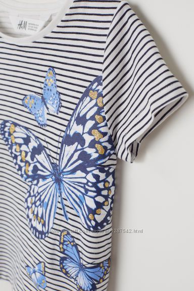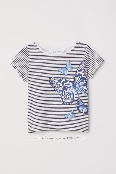 Легка трикотажна футболка для дівчинки англійського бренду h&m.Прикрашена принтом по всій довжині та має гарний малюнок метелика.