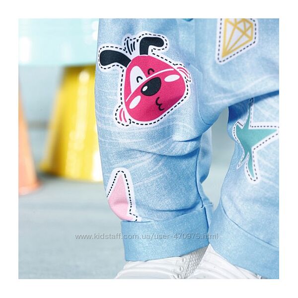 Набір одягу – Джинсовий стиль – чудовий варіант для прогулянки на вулиці! Комбінезон має пришивні кишені та ґудзики, а також охайний комір. Він прикрашений кумедними принтами, схожими на пришиті латки. А білі кросівки створюють ідеальний контраст до синього вбрання. Костюмчик зроблений за технологією easy fit - він легко одягається та знімається за допомогою липучок. Одяг виготовлено з високоякісних матеріалів.
