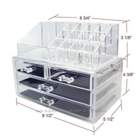 цены указаны под фото, все новые, фото 1-3- в коробке, фото 8-9- в коробке+запаян в полиэтилен Акриловый органайзерЖенщина должна быть прекрасной! – это истина, которую знают все. Красота эта в значительной степени определяется множеством косметических средств. Помада, тушь для ресниц, лаки для ногтей, средства по уходу за зубами и волосами, духи, ватные шарики, лосьоны, разные украшения — всего не перечислить. Разумеется, всё это можно приобрести, но где хранить это богатство? Акриловый органайзер для косметики Cosmetic Storage Box поможет Вам не только сэкономить время на поиски нужных баночек, кисточек и тюбиков, но и сохранить порядок и чистоту на туалетном столике, на столешнице в ванной, на комоде, на подоконнике и на других открытых поверхностях.