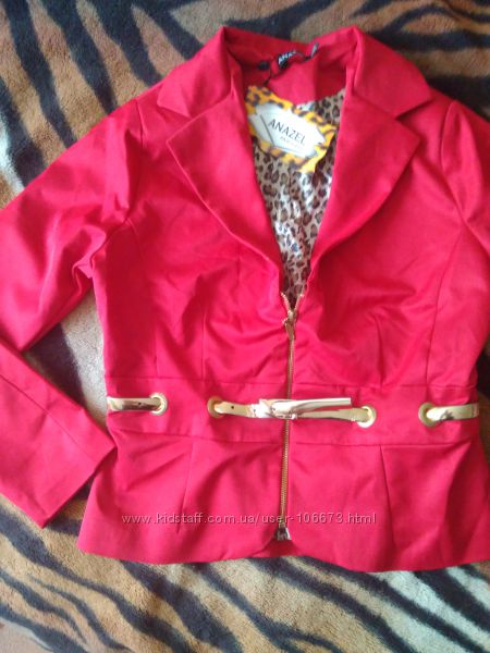 Пиджак новый ТМ Anazel с ремнем (есть деффект на поясе, фото 4,можно без пояса или заменить)цвет красный