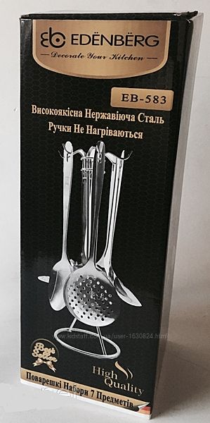 Во время приготовления пищи мы пользуемся разнообразными вспомогательными кухонными принадлежностями, которые значительно облегчают этот процесс. Кухонный набор EDENBERG, состоит из 7 предметов, , без которых не обойдется ни одна хозяйка. Набор функционален и эстетичен, он прекрасно сочетается с интерьером любой кухни. Аксессуары имеют оригинальный дизайн, эргономичные и удобные металлические ручки, расположены на устойчивом металлическом основании. Полированная поверхность предметов набора обладает защитными свойствами, ее легко чистить. Набор изготовлен из высококачественной пищевой нержавеющей стали, это Ваш незаменимый помощник на кухне!Кухонный набор EDENBERG состоит: