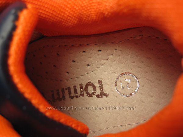 Зроблені дитячі кросівки з якісного шкірозамінника. Застібаються на дві липучки, що дозволяє відрегулювати підйом і повноту. Підошва гнучка й еластична. Легкі і зручні.Устілка шкіряна профілактична (супінатор). Устілка не виймається.Виробник - Tom.m