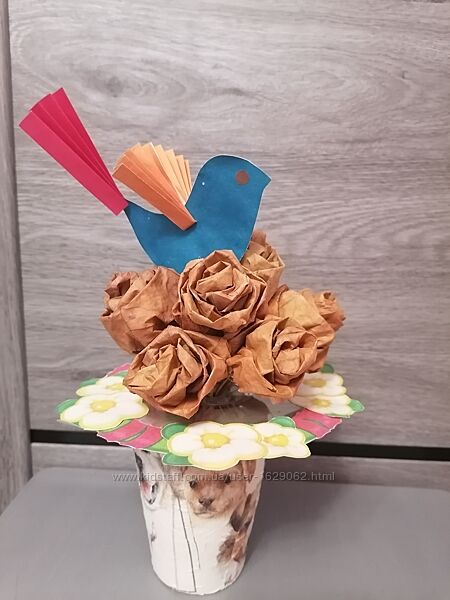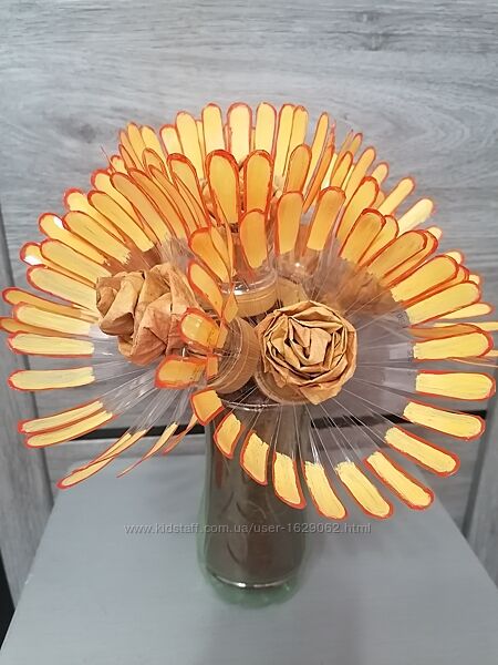 7фото. Букет с цветами из пластиковых бутылок - высота 27 см. - 30 грн.