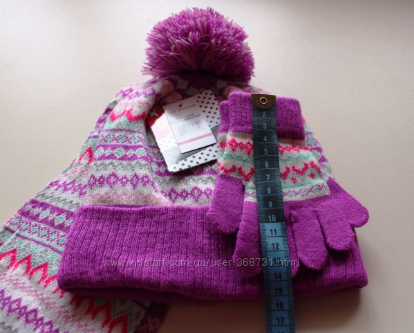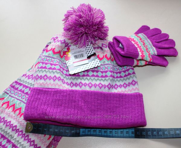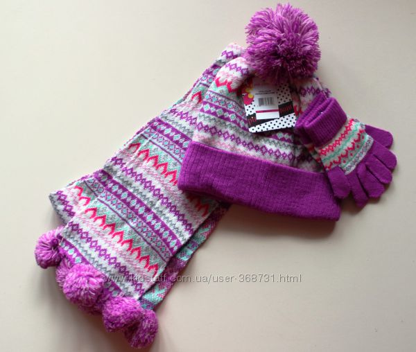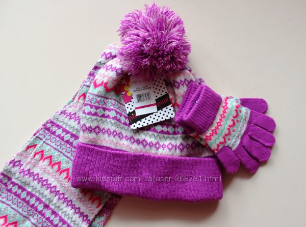 Комплект 3 предмета PINK PLATINUM. США. 7\16 - на возраст 5-7 лет. СШАPink Platinum Girls Pattern Striped Hat, Glove, and Scarf Set