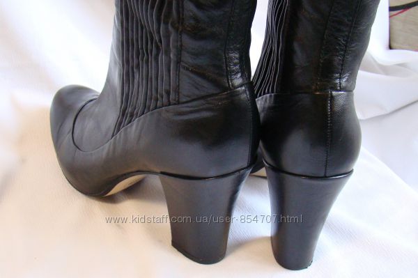 Сапоги женские демисезонные кожаные высокие черные Clarks (Размер 41)б/у, в отличном состоянии, были одеты один раз. Натуральная кожа. Подкладка из текстиля. По длине голенища, с двух сторон, функциональная эластичная гофрированная вставка, с помощью которой достигается эффект сапог-чулок. Снаружи эта вставка из натуральной кожи, изнутри резинка. Стелька кожаная мягкая и комфортная.