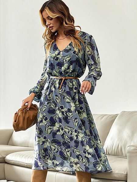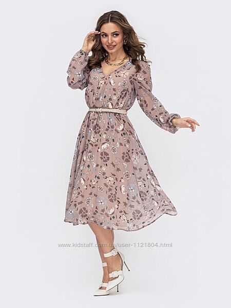 Подробное описание: Платье миди из шифона с V-образным вырезом горловины