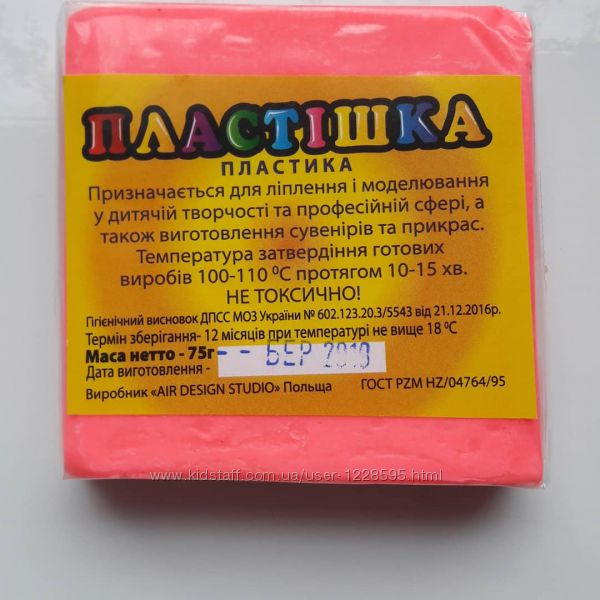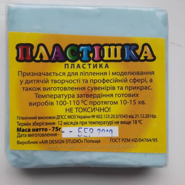 Полимерная глина ( пластика) Пластишка Вес 75 г.Предназначена для лепки и моделирования, изготовления украшений, сувениров, кукол и т.д. Также может использоваться в художественных школах и студиях в возрасте от 7 лет. Перед лепкой нужно руки увлажнить водой или кремом для рук.