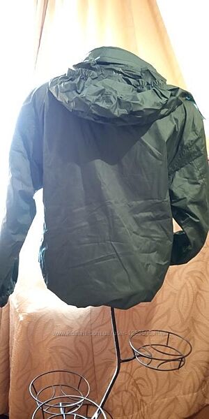 Другая сторона - мягкий, очень приятный, плотный, тёплый флис .Сзади светоотражающая полоска .Застёгивается на молнию + двойная планка на липучках, имеет 2 боковых кармана на молниях.Капюшон сворачивается и застегивается в воротнике на молнию. Манжеты рукавов на широкой резинке.