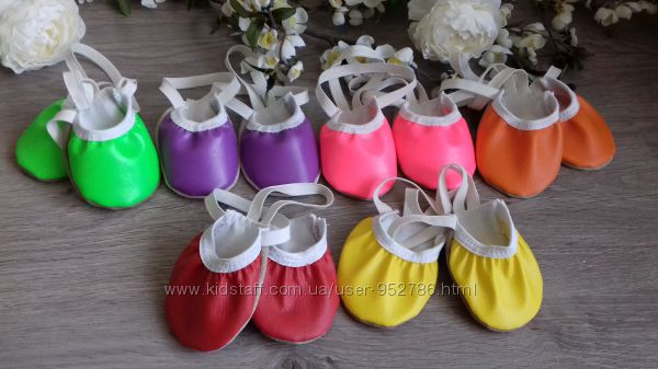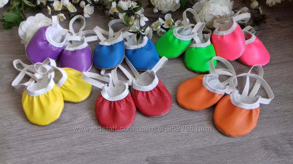 Новые, очень красивые получешкипудрового, бежевого, перламутрового, ярко розового, салатового, фиолетового, желтого, оранжевого, синего, голубого, золотого, серебристого, красного, черного и белого цвета, верх - хороший, плотный кожзаменитель, подошва - натуральная кожа. Дополните образ ребенка и сделайте праздники, тренировки неповторимыми!Размеры в см: