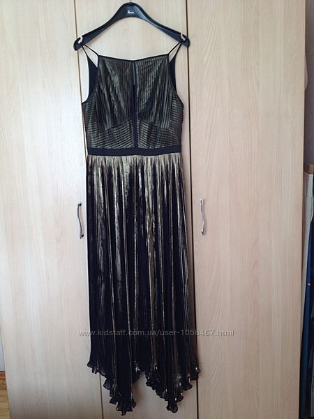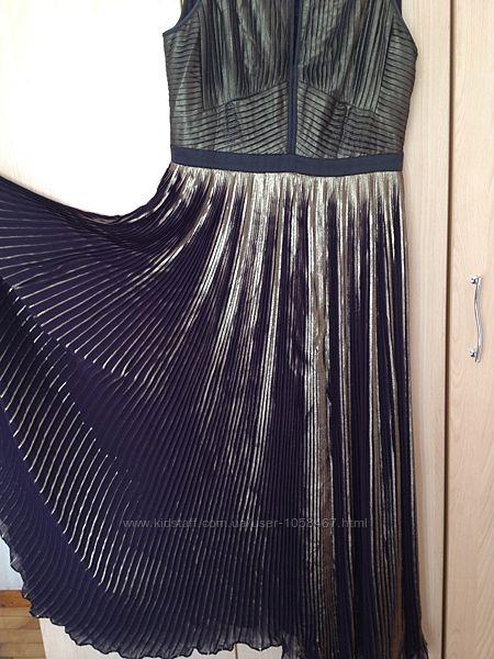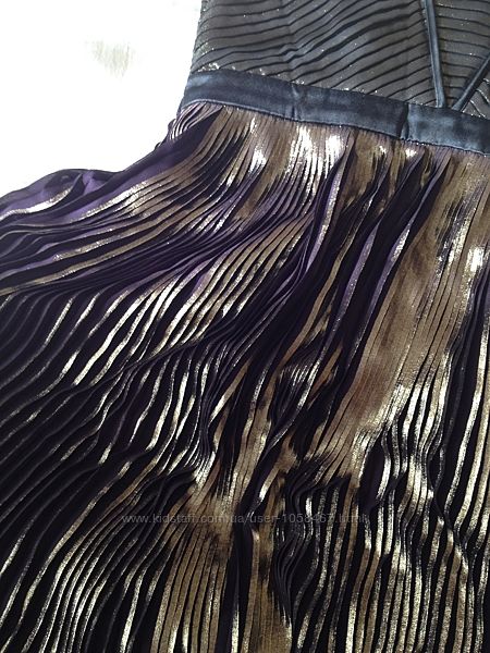 фото № 1-5 шикарное платье макси Armani в идеальном состоянии, на подкладке, два больших разреза впереди,завышенная талия, длина 150 см, подмышки 45 см, фото № 6-10 шикарное платье Karen Millen завышенная талия, шифоновая юбка плиссе с золотой отделкой баклажанового цвета в идеальном состоянии, длина 140 см, подмышки 48 см, талия 40 см, молния сбоку, цена каждого