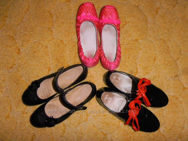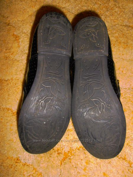 Отличная обувь, носила только моя дочка. Состояние хорошее.1. ПРОДАНО Черные кожаные туфельки с лаковым цветочком и замшевыми листочками. Дочка носила только в школу, но умудрилась потерять на одном туфельке один ряд цветочных лепестков, в глаза сильно не бросается. Туфельки фирмы Laspi. Носочки, подошва не сбиты. Размер 36 длина стельки внутри 23см. Липучки держат отлично. Из-за дефекта отдам за 150грн. Новые стартуют от 650грн.