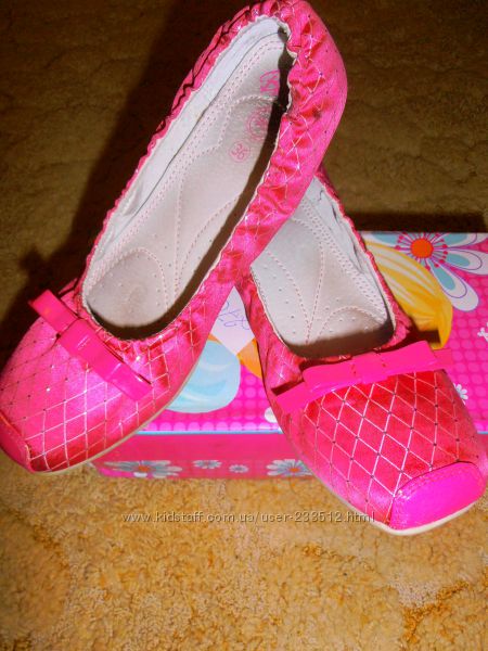 3. Розовые текстильные балетки фирмы Barbie, внутри кофа сверху текстиль. Состояние отличное т.к. успели только несколько раз одеть и нога выросла. Размер 36 длина стельки 23,3см. Гибкие и легенькие. Носочки и подошва не сбиты. Цена 150грн. Первому покупателю с этого объявления (по желанию) при покупке любой пары ПОДАРОЧЕК кроксы с длиной стельки внутри 23.7см.