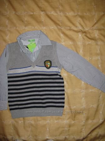 Джемпер-обманка для мальчика торговой марки Many&many, жилет вязаный. Материал - 100 % хлопок. Цвета - светло серый + темно синий + белый. Отлично подходит как для ежедневной носки так и для школы.Указан размер 11, по размерной сетке - это 110 -120 см возраст 5-6 лет, но лучше ориентируйтесь по замерам