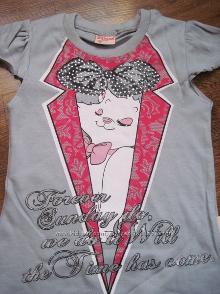 Нарядная футболка для девочки с рисунком - выглядывающая Кошка, Турция.Украшена стразами, рукава - крылышки, 100% хлопок.