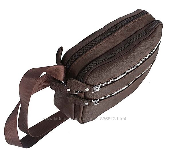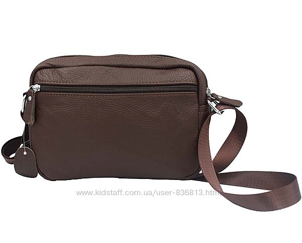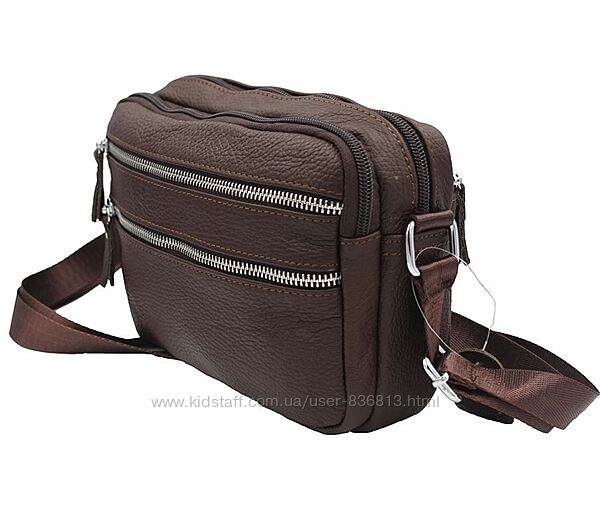 Сумка через плече чоловіча шкіряна коричнева, металеві молніїрозмір 16х23х8смДва основних відділення на блискавці. На фасаді відділення на змійці. На звороті відділення на молнії. Регульований ремінь на плече 70-140см.