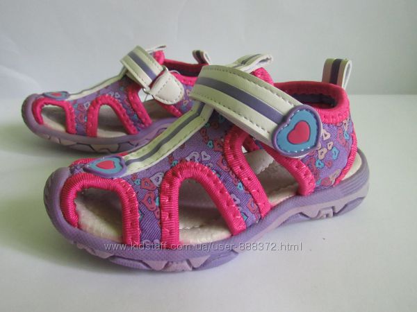 Летние стильные босоножки на девочку, практичные, удобные, с закрытым носком (каучук), защищающим пальцы от ушибов. Размеры 20-25, стелька ― натур. кожа, ортопедическая, верх ― текст.+ качественный кож. зам.ЗАМЕРЫ ПО СТЕЛЬКЕ: