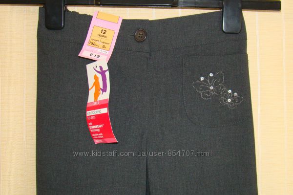 Брюки M&S Marks & Spencer (Размер 152 (12 лет))Ткань лёгкая, костюмная. На кармане вышивка. По поясу есть резинка для регулировки. Состав 64% полиэстер, 34% вискоза. 2% эластан.